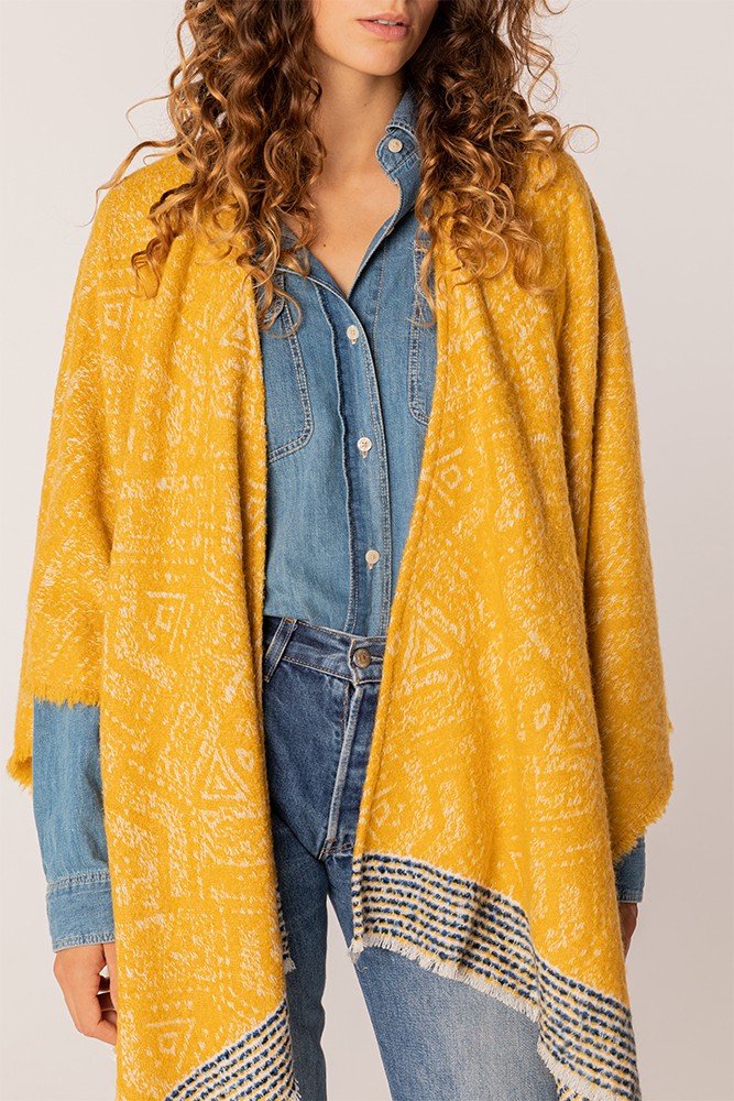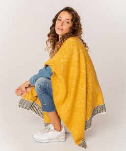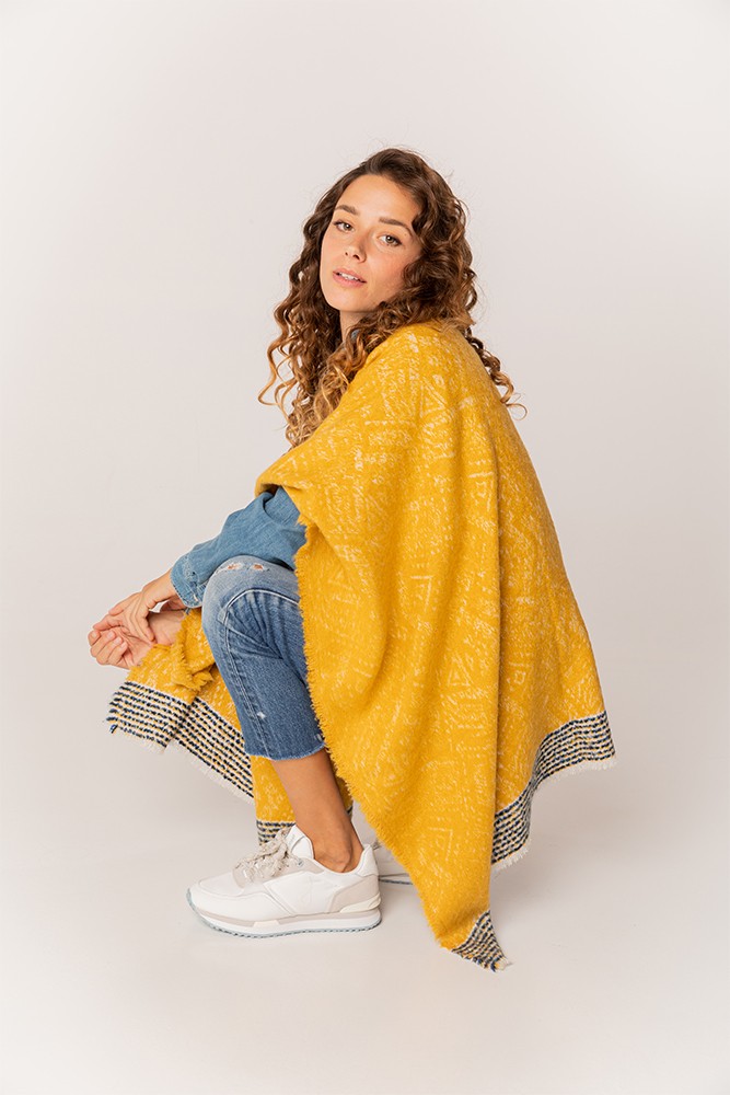 Women’s printed poncho that combines two colours, very warm, loose and soft to the touch, perfect to accompany us in autumn and winter days. A very combinable design perfect for your daily looks. It has two large front pockets.