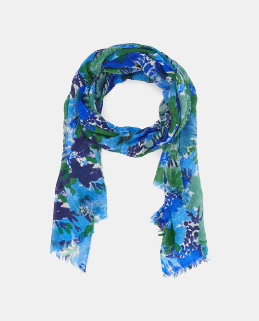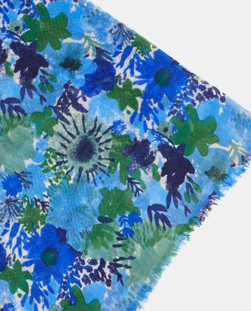 Abbacino Accessories Scarves Wool Scarf With Blue Floral Print | Blue
