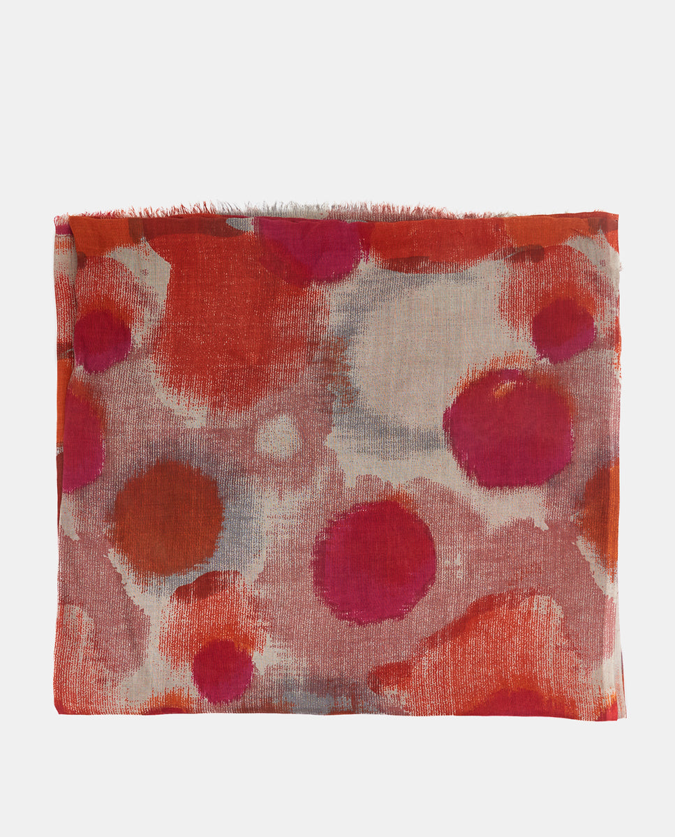 Soft, lightweight wool scarf with an abstract print. A versatile and functional accessory, ideal for any occasion. Frayed edges.