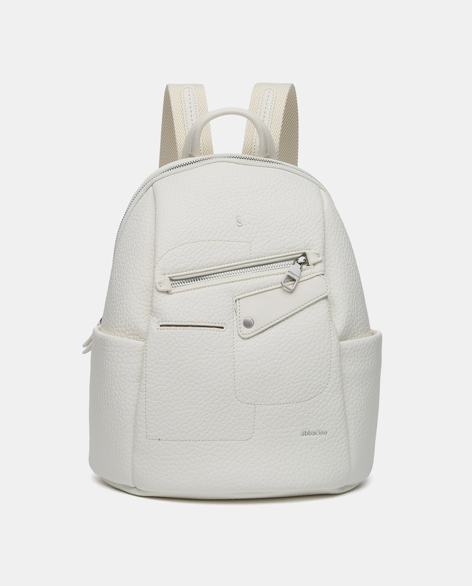Women’s backpack made from recycled materials. A multi-pocket model with simple and minimalist lines, perfect for daily use and set to become a staple during the spring and summer months. Its main features are: