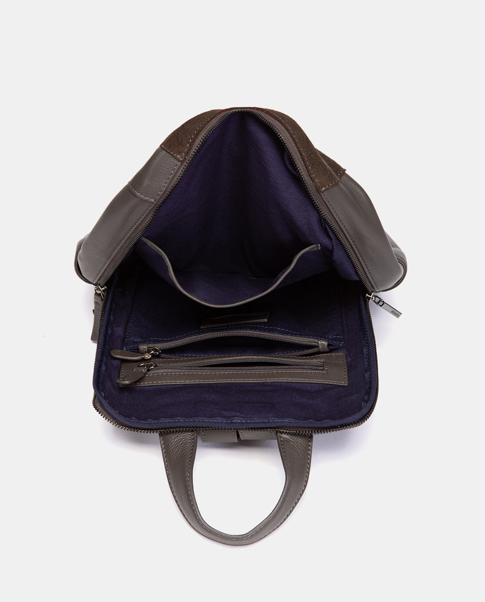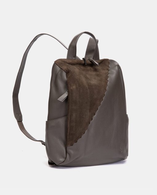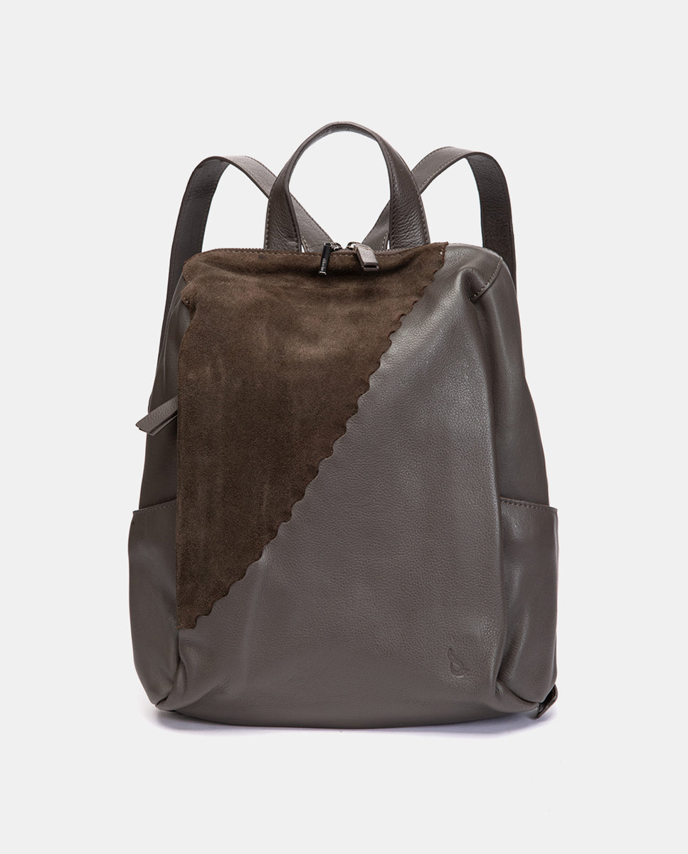 Women’s backpack that combines leather and suede, creating an elegant contrast of textures, perfect for everyday use. Its main features are: