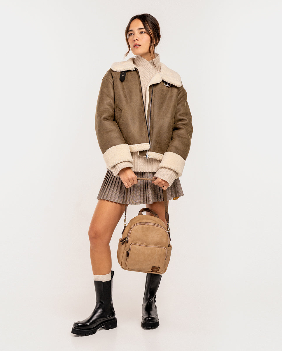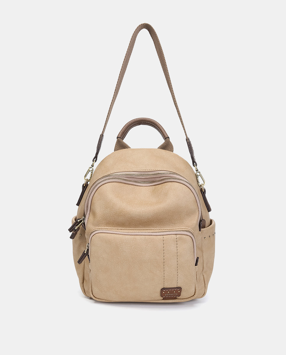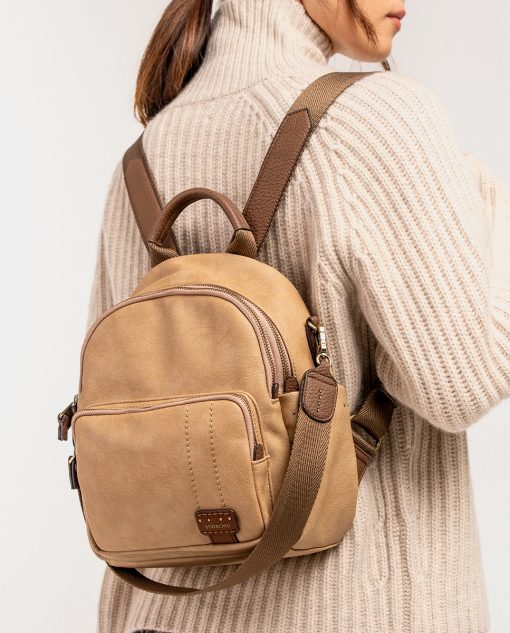 Casual women’s backpack made from recycled materials, ideal for everyday use. Functional and practical, perfect for those looking for comfort and organization. Its main features are: