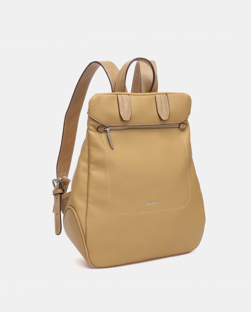 Women’s backpack made from recycled materials. Its simple and minimalist design, dyed in summery colors, offers a spacious interior. Its main features are: