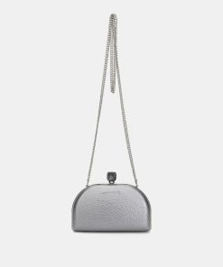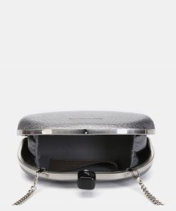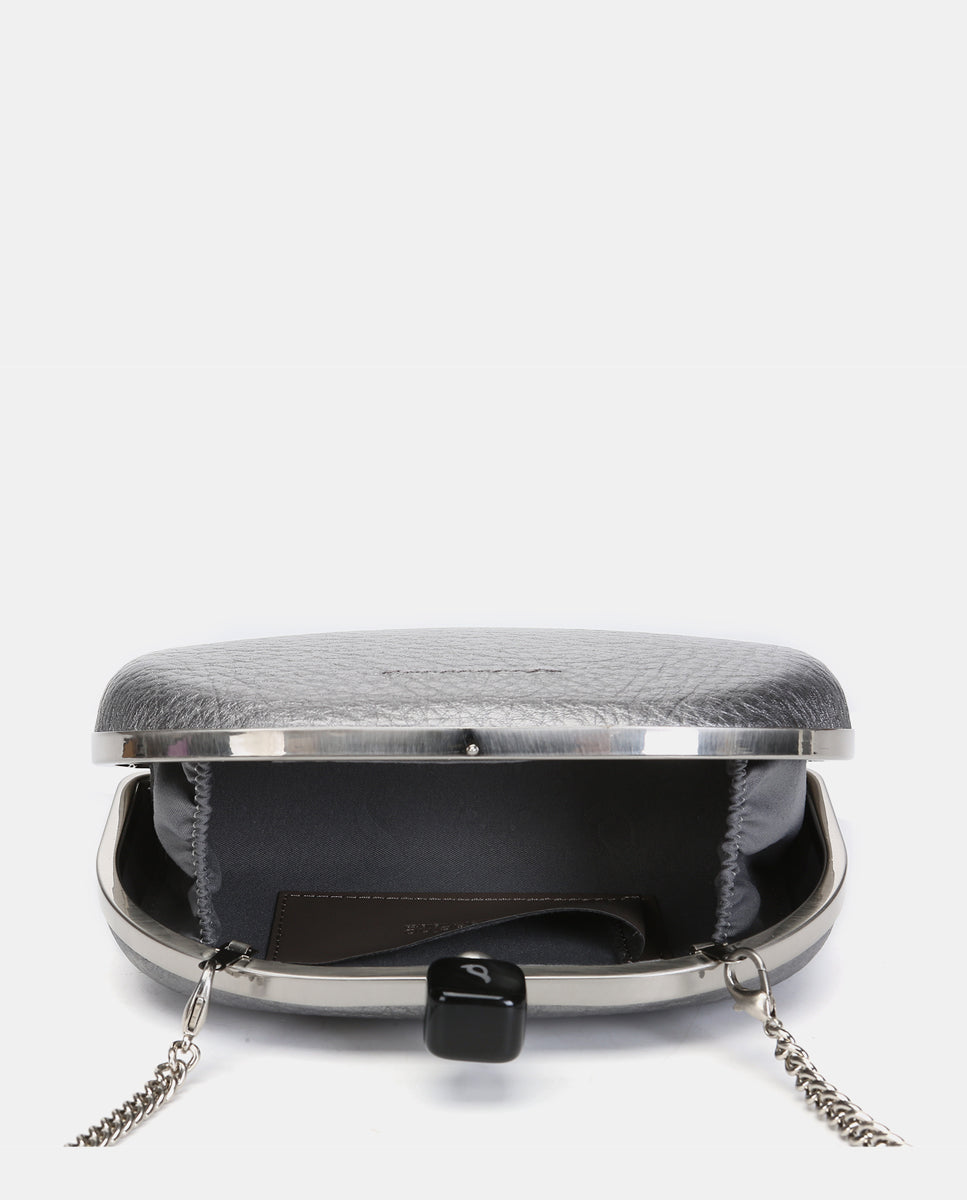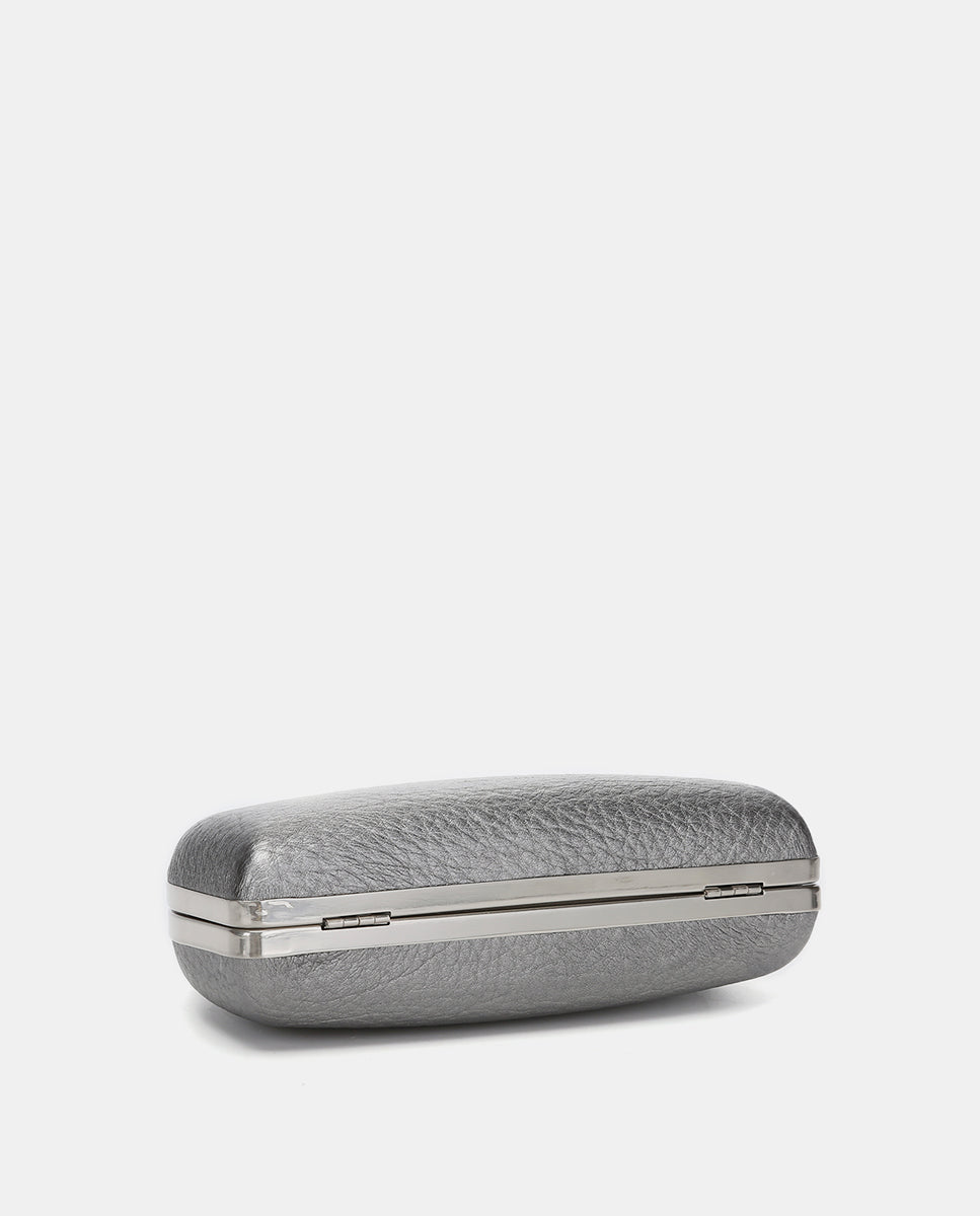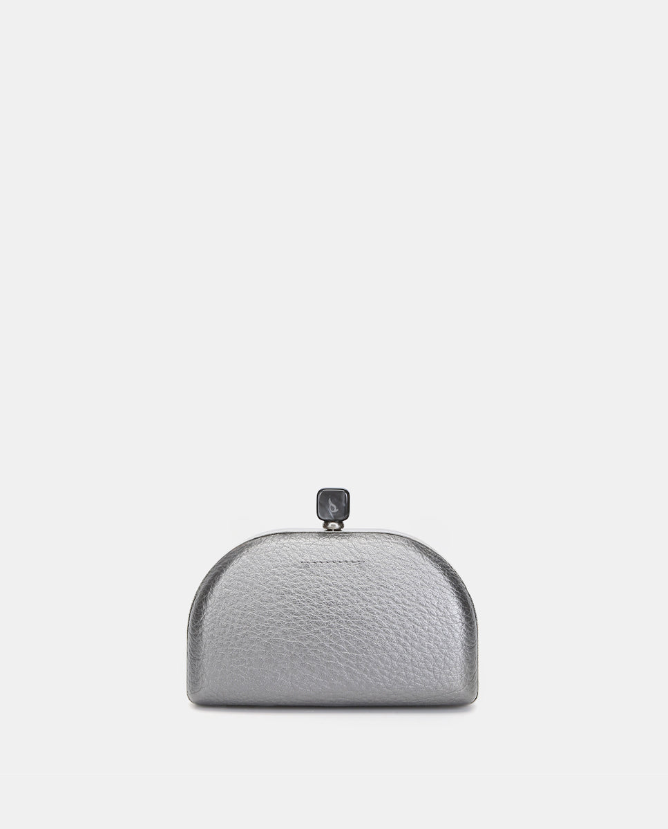Metallic-finish, half-moon-shaped evening clutch, ideal for special events. Its striking and functional design makes it the perfect accessory for your most sophisticated looks. Its main features are: