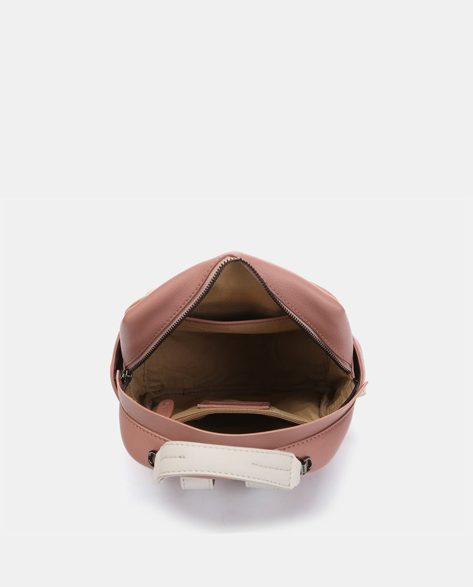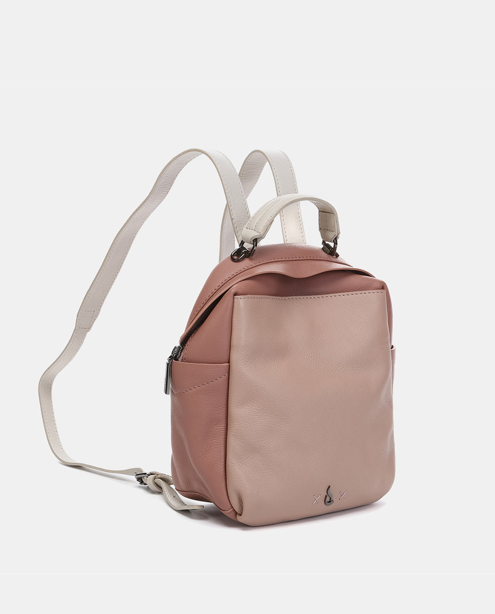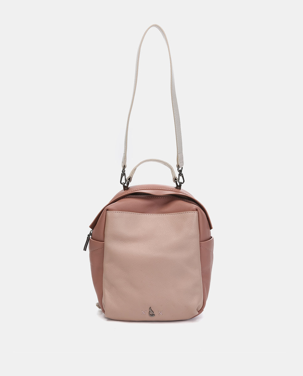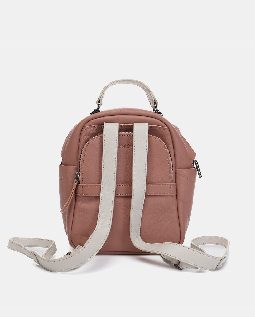 Multifunctional women’s backpack in bicolor premium leather. A basic and practical design for everyday use. Its main features are: