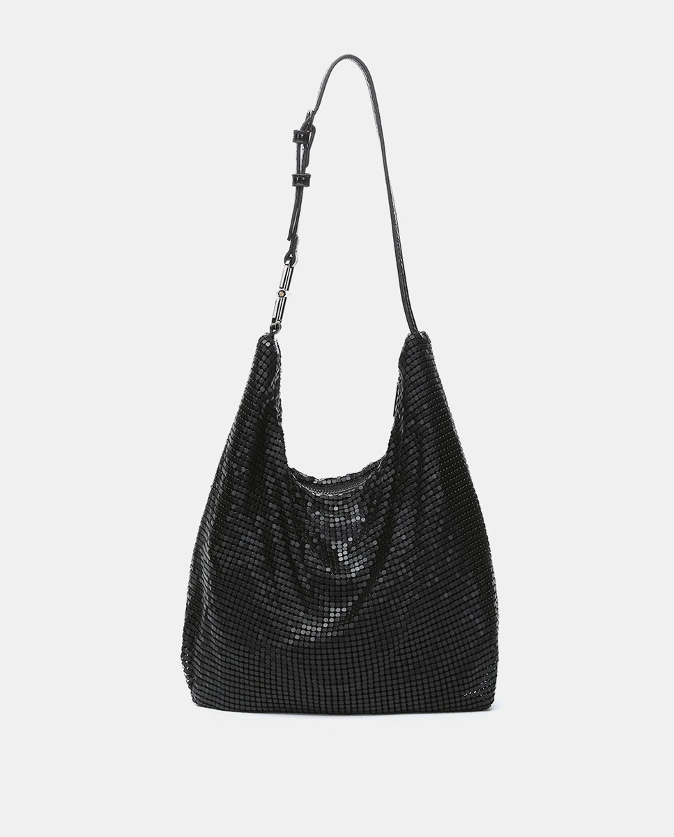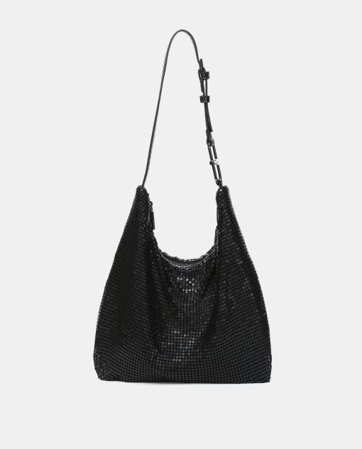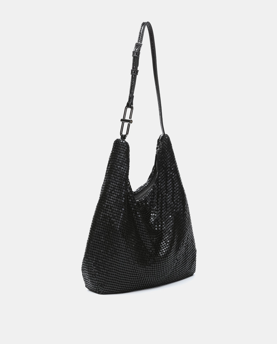 Abbacino Black Metal Mesh Shoulder Bag | Black | Bags Party