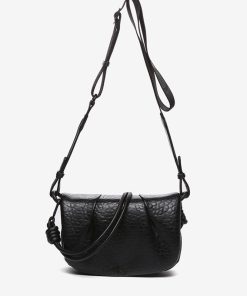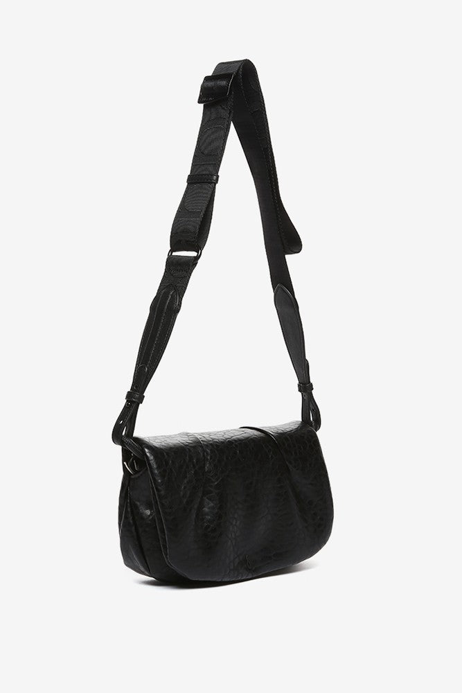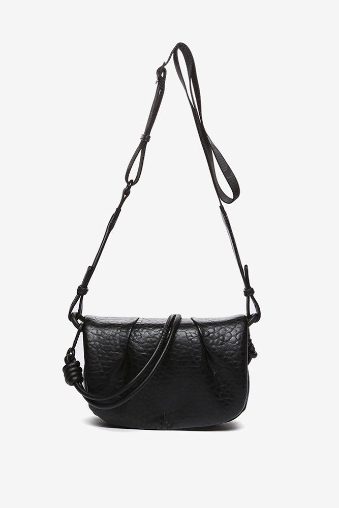 Women’s crossbody bag made from recycled materials. A design that features a lovely gathered front and the rustic texture of its material. Its main features are: