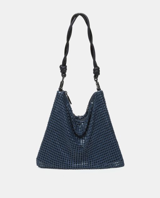 Abbacino Blue Metallic Mesh Shoulder Bag | Blue | Bags Party