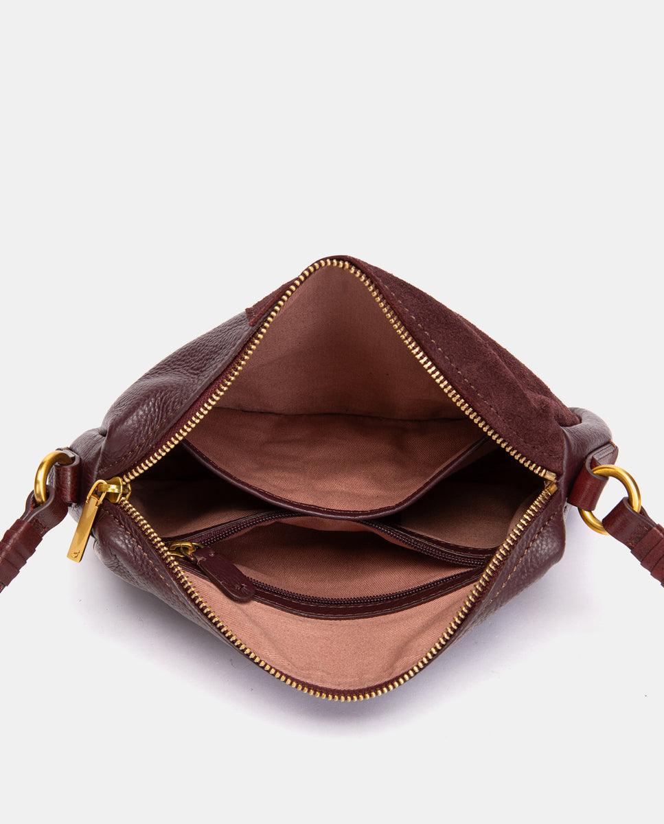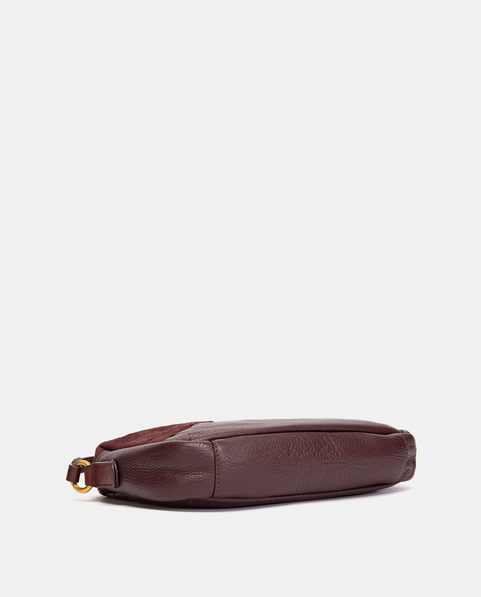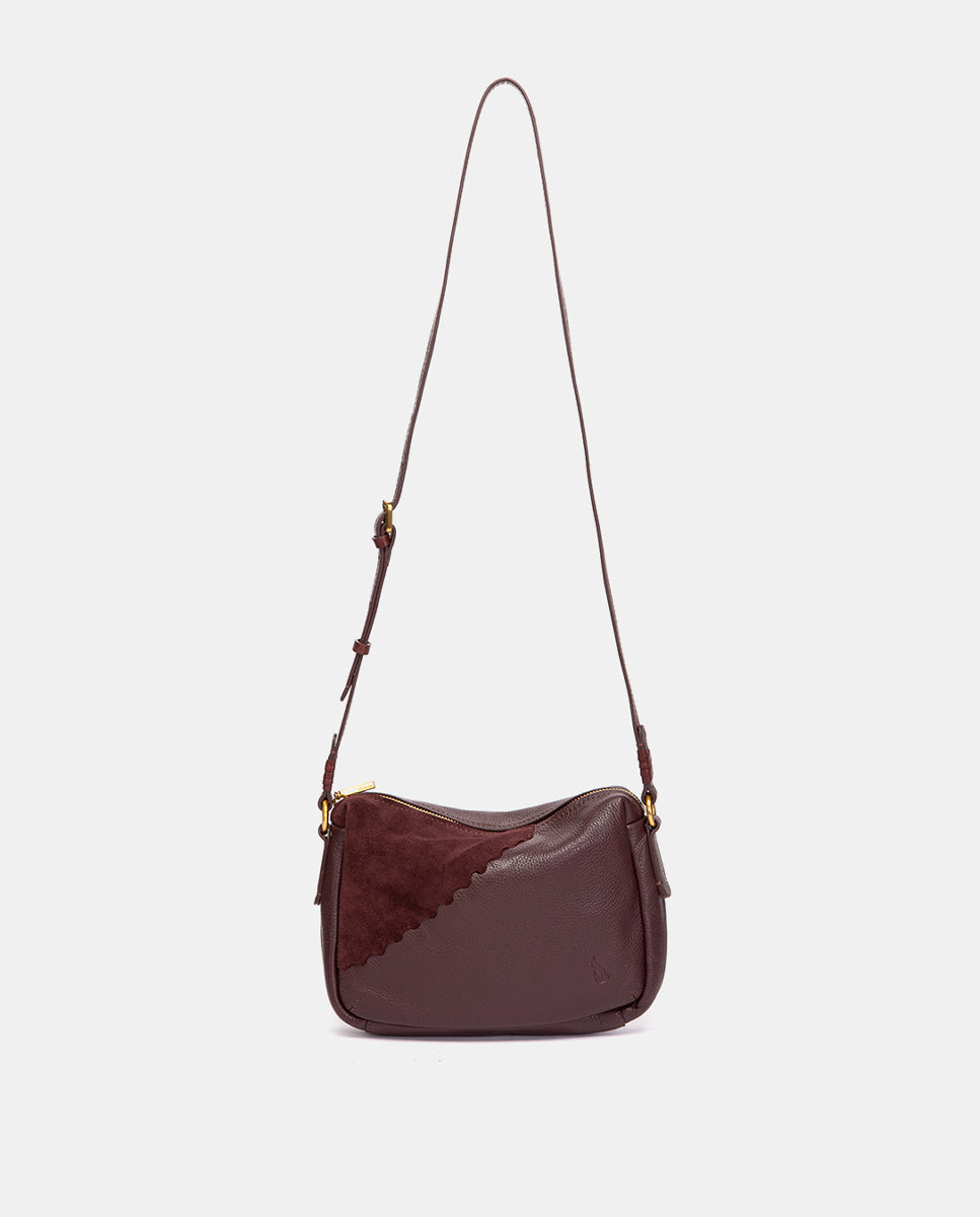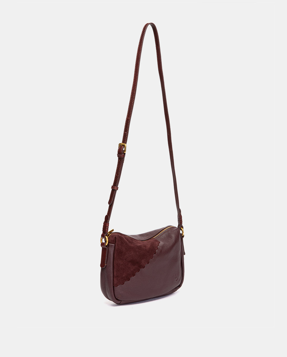 Women’s crossbody bag that combines leather and suede, creating an elegant contrast of textures, perfect for everyday use. Its main features are:
