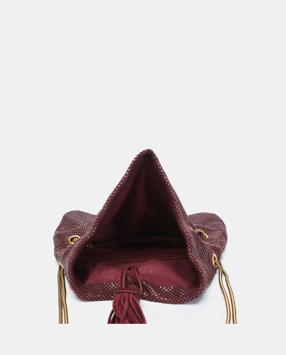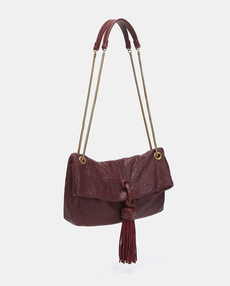 • Top closure with flap decorated with a suede tassel as a distinctive detail.