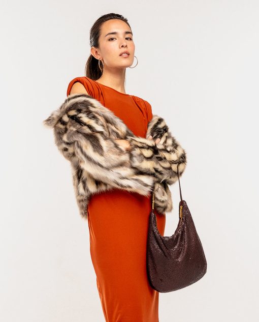 Abbacino Burgundy Metallic Mesh Shoulder Bag | Bordeaux | Bags Party