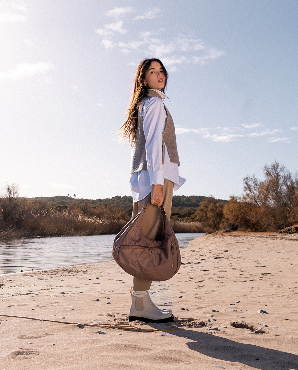 Abbacino Camel Shoulder Bag In Recycled Materials | Camel | Bags Shoulder Bags