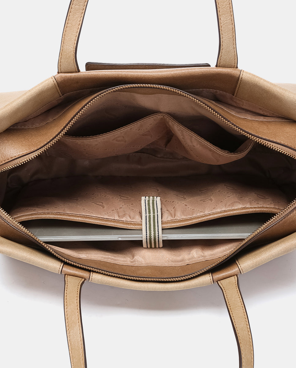 A ladylike shoulder bag with straight lines, neutral colors, and a classic design that stands out for its elegance and impeccable finish. Sophisticated and functional, it’s ideal for everyday use. Its main features are: