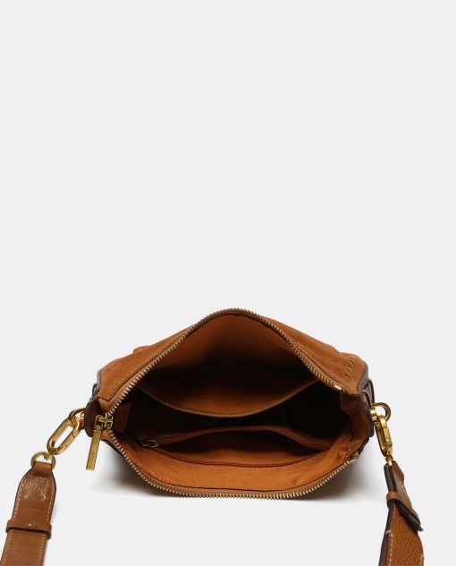 Women’s crossbody bag with a curved silhouette made of premium suede leather. A model in timeless colors that are easy to combine, reflecting elegance and a classic vibe. Its main features are: