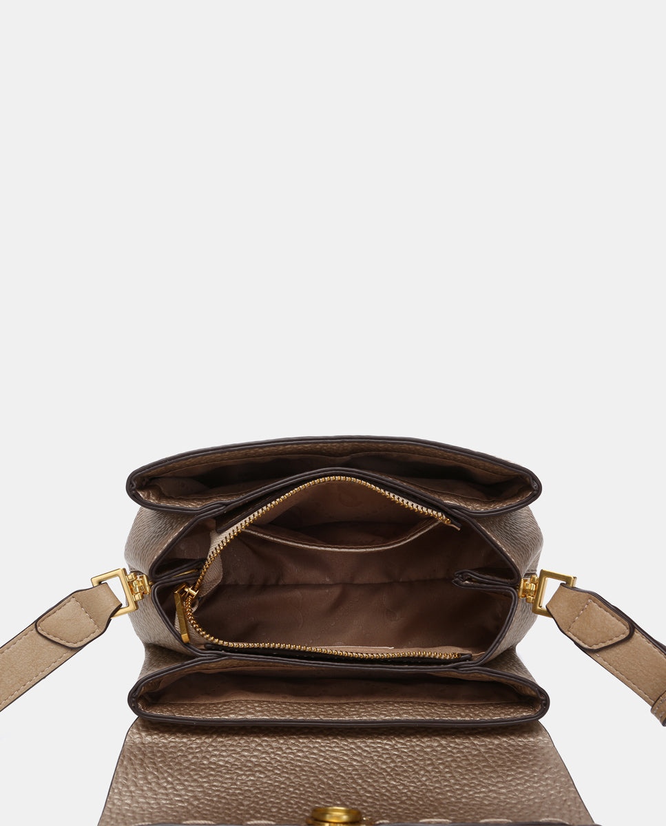 Rectangular women’s crossbody bag, made from recycled materials and dyed in autumnal hues. Its simple, minimalist design makes it an ideal choice for everyday use. Its main features are: