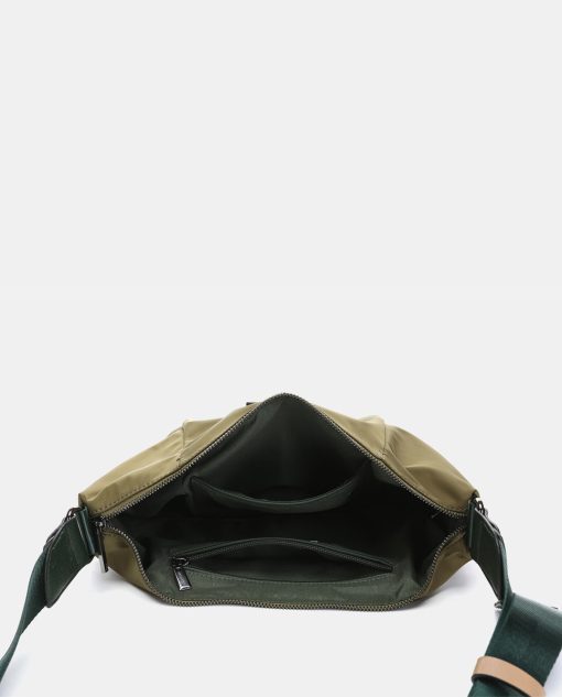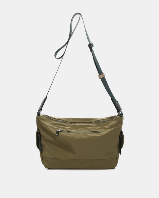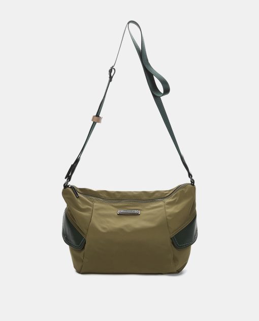 Women’s crossbody bag made from recycled fabric with a subtle satin finish, featuring a practical and functional design in a casual, sporty style, ideal for any occasion, from the office to the gym. Functional and elegant, it’s perfect for those seeking comfort and style. Its main features include:
