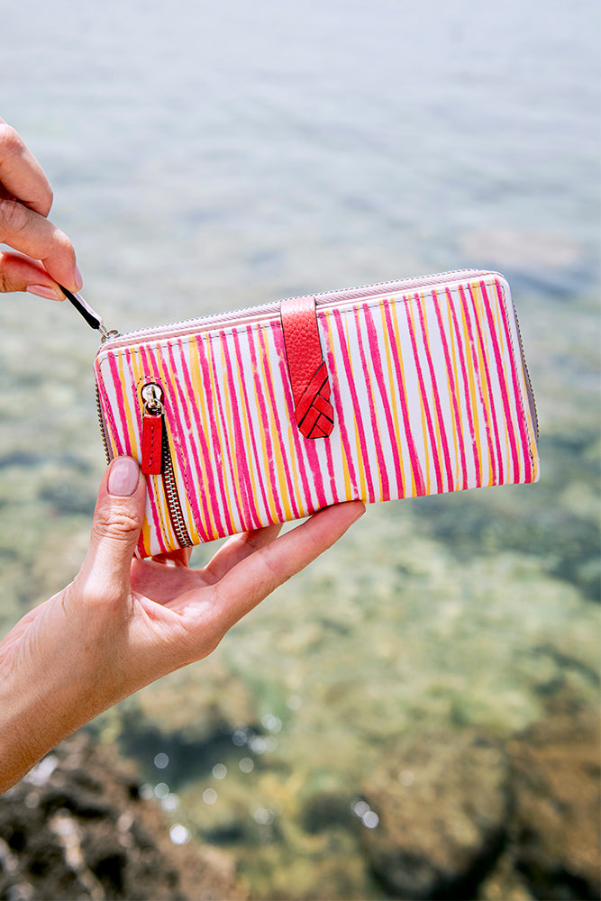 Abbacino Large Leather Wallet With Coral Print | Red | Wallets Large Wallets
