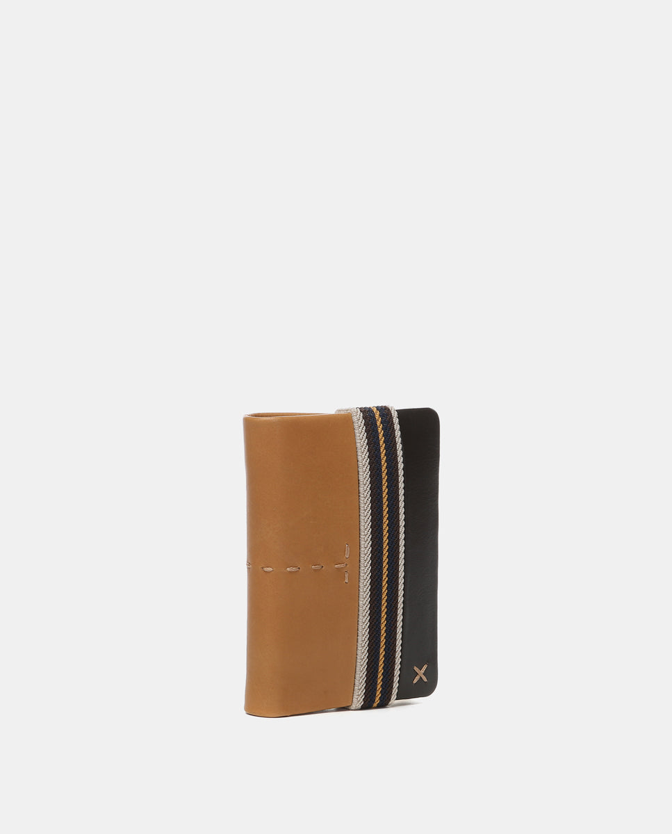 Men’s sport-style wallet made of cowhide leather. A very practical model with an elastic closure that combines two color tones. Inside, it features several organizational compartments for cards and bills. RFID protection system.