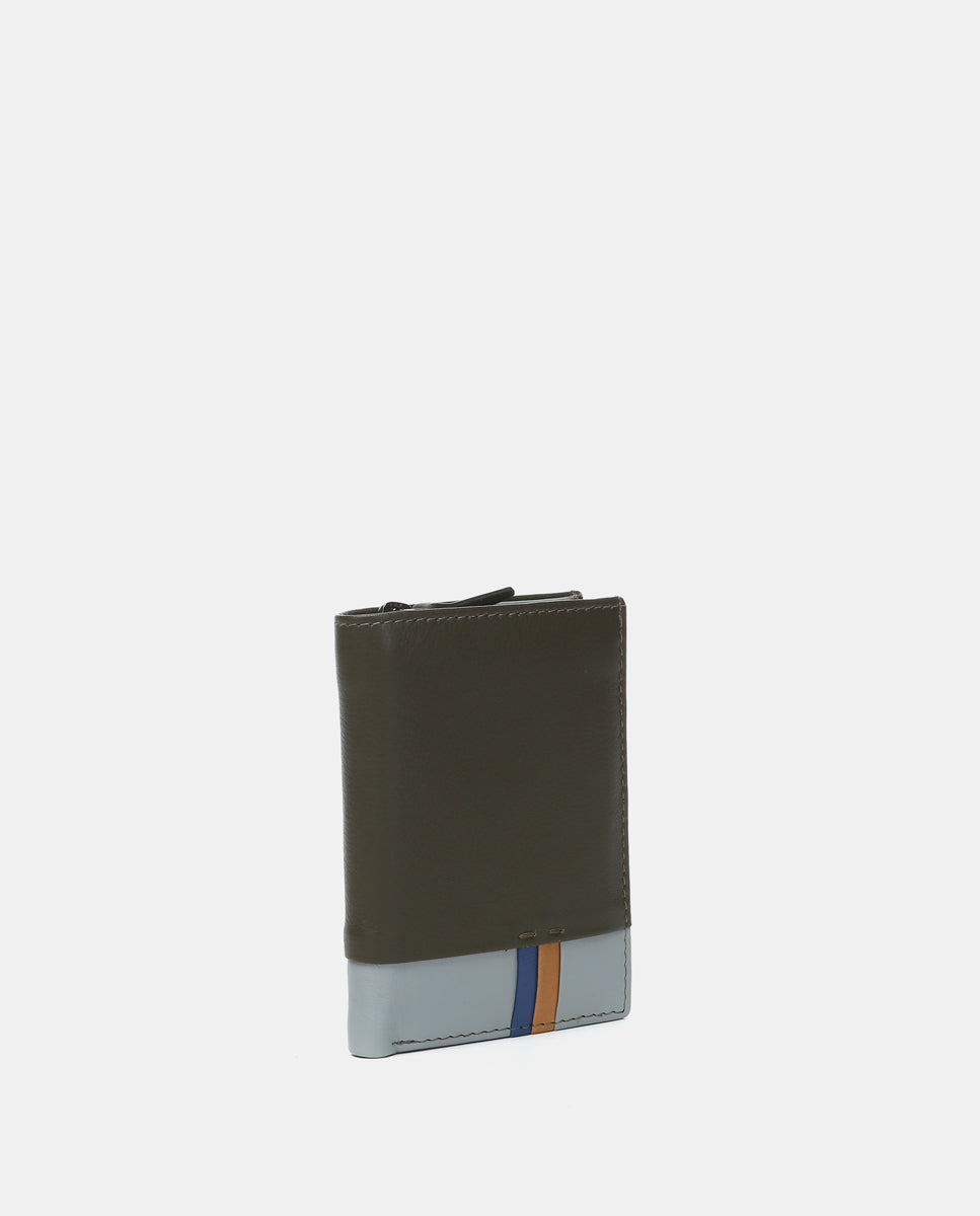 Men’s wallet made of cowhide leather. A very practical model that combines different color tones. It features several organizational compartments for cards and bills, an interior coin pocket, and an RFID protection system.