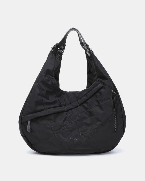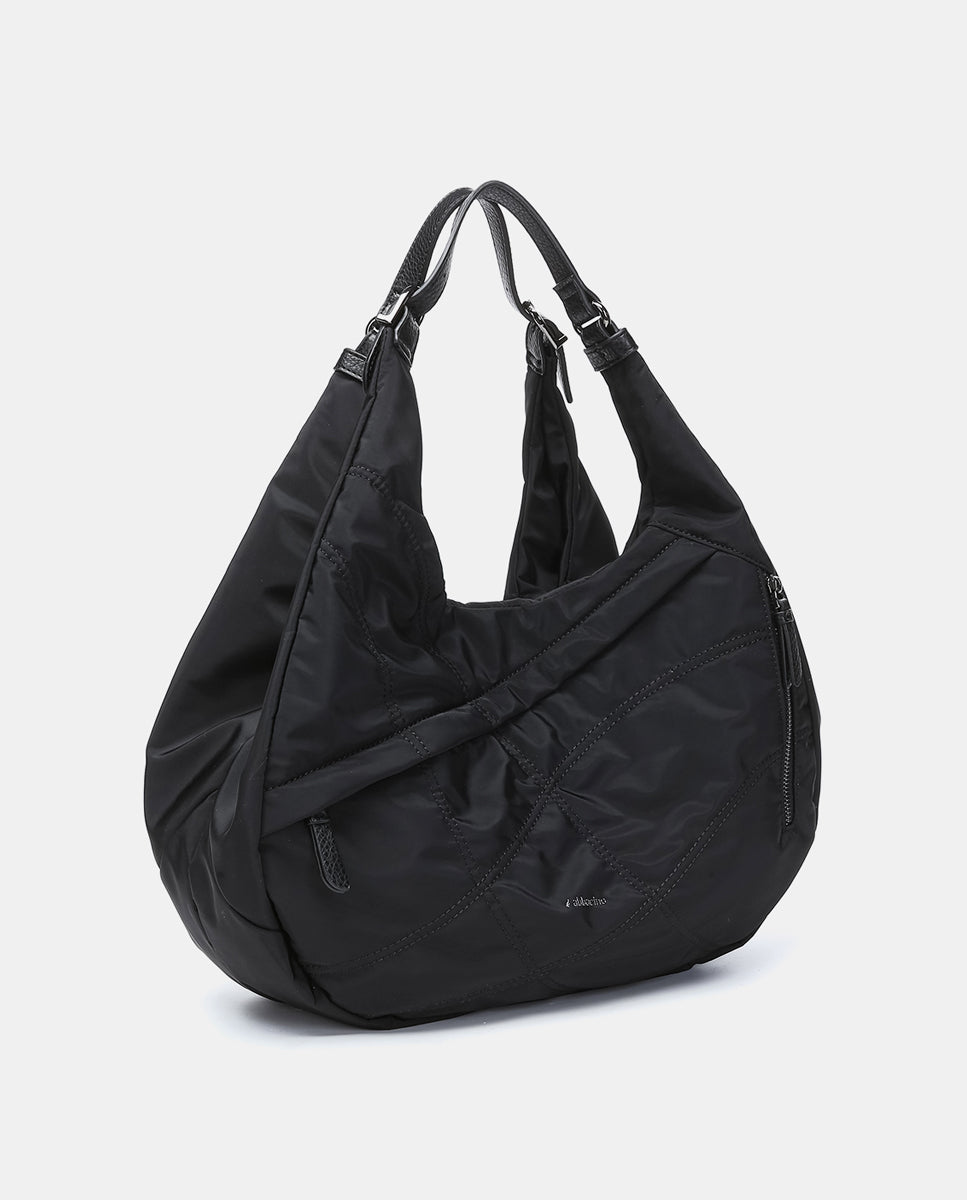 Women’s hobo-style shoulder bag made from recycled fabric with a satin finish. Sporty and functional, it’s ideal for fall and winter thanks to its seasonal colors. Practical and stylish, it’s perfect for everyday wear. Its main features are: