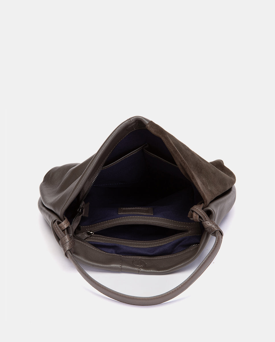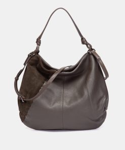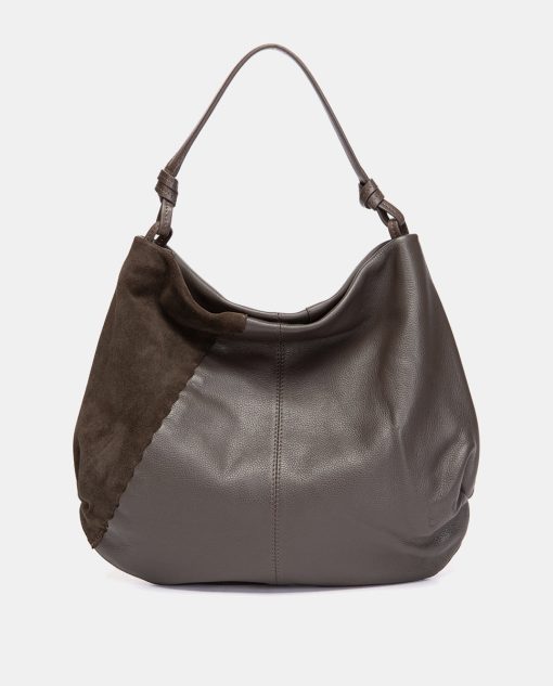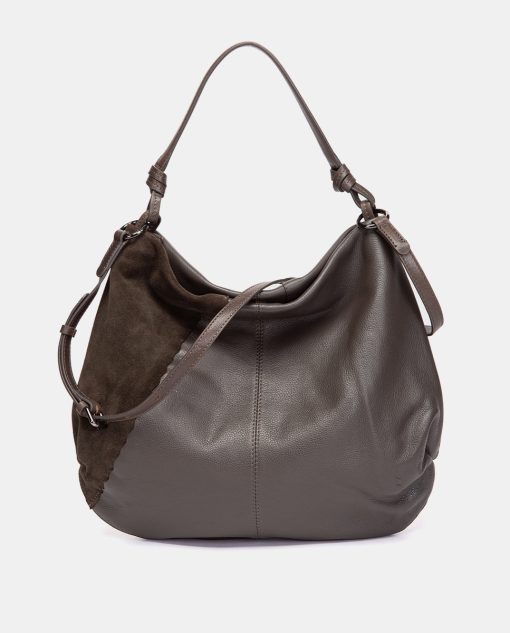 Abbacino Shoulder Bag In Grey Leather And Suede | Grey | Bags Leather