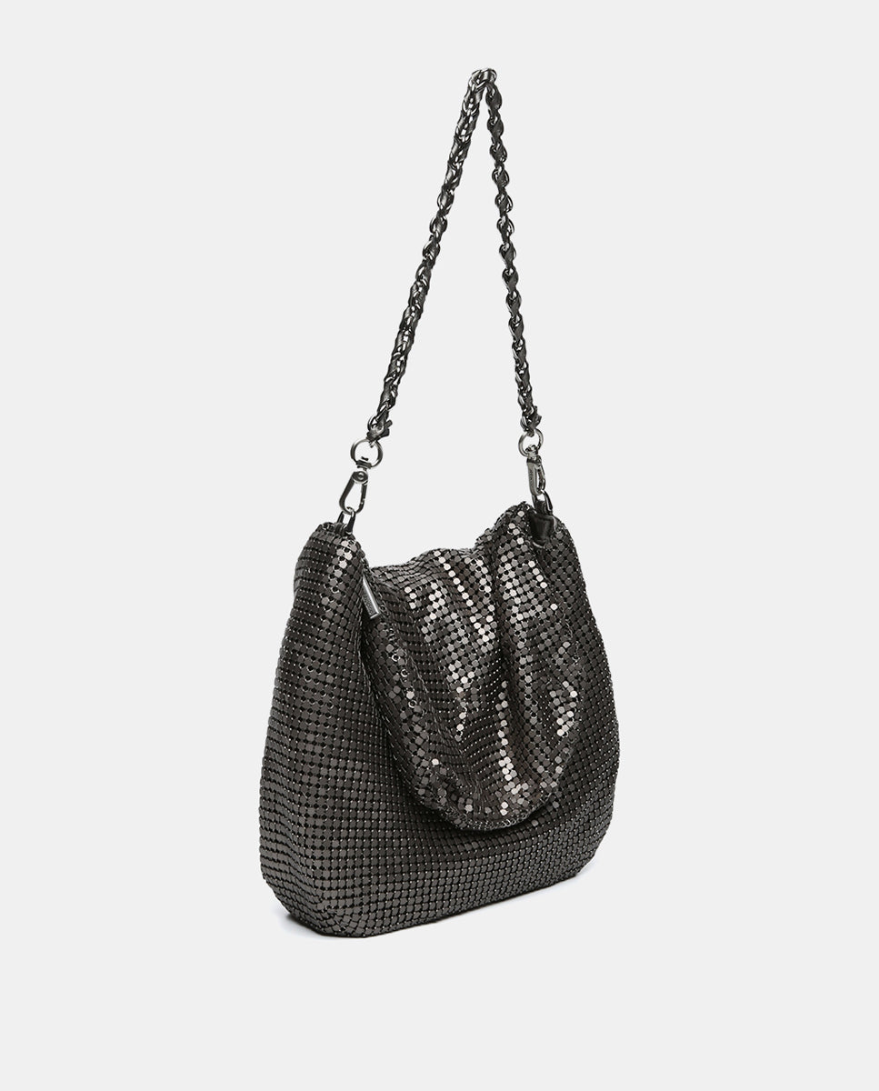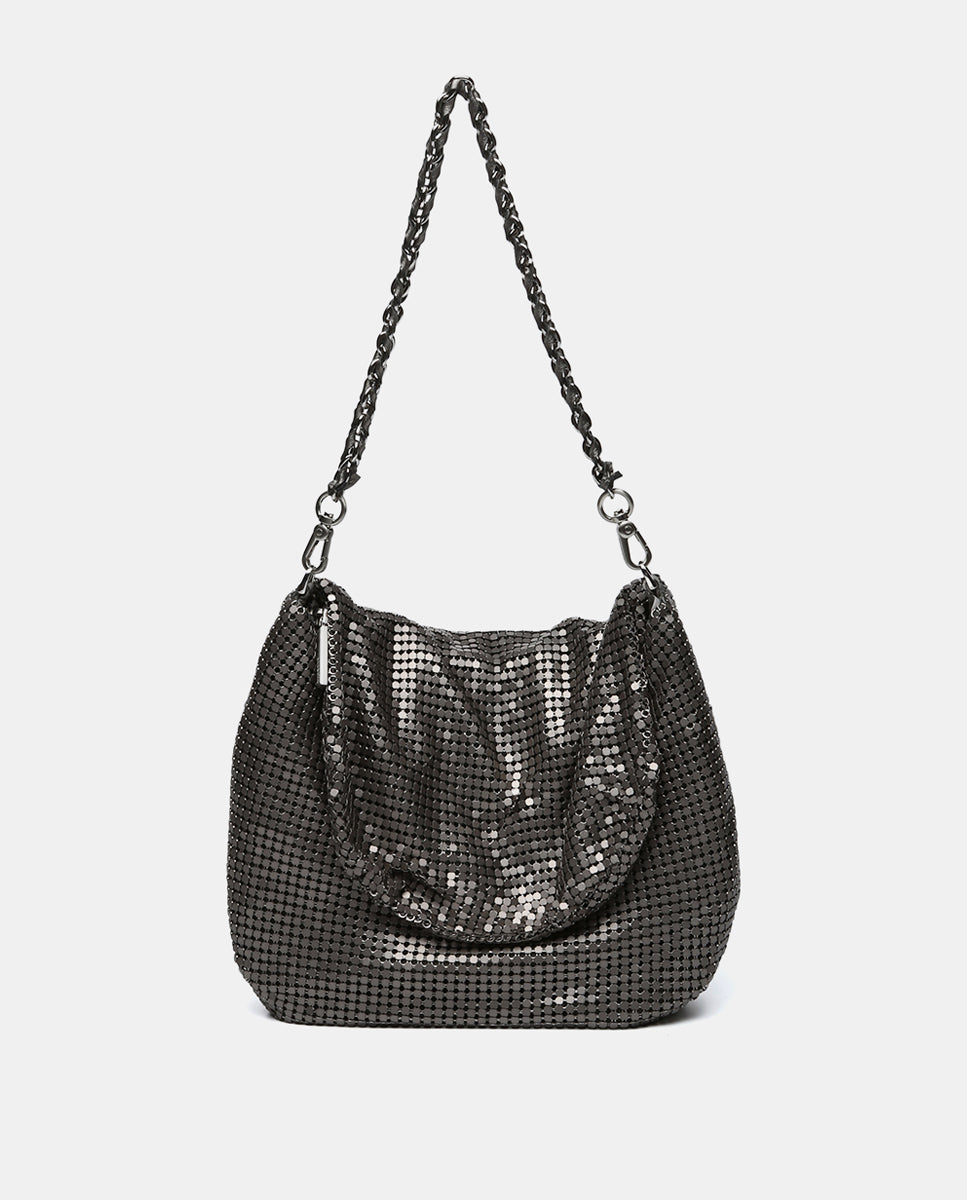 Women’s hobo-style party shoulder bag made of metallic mesh. A design dressed in seasonal colors that will make you shine wherever you go, perfect for both day and night, it is the ideal option for creating unique looks. Its main features are: