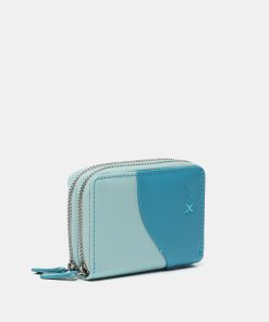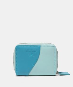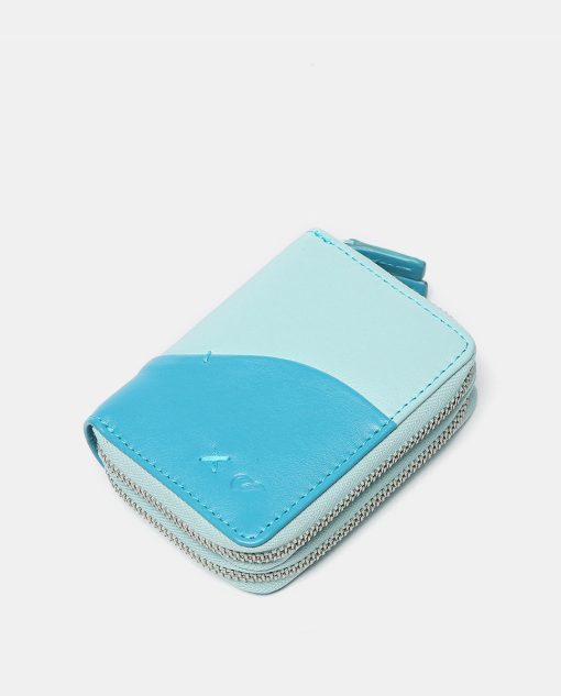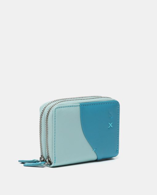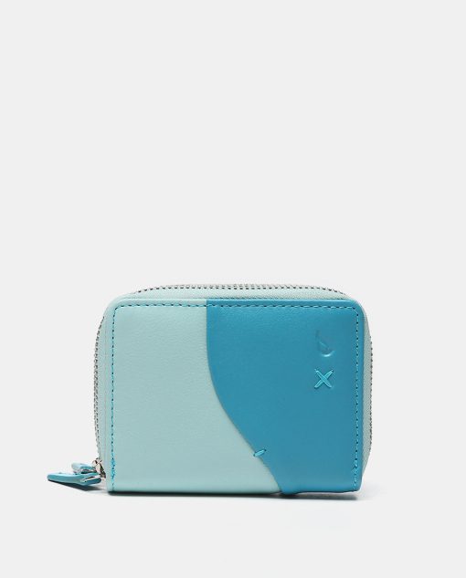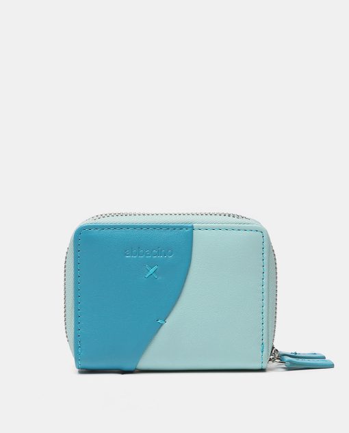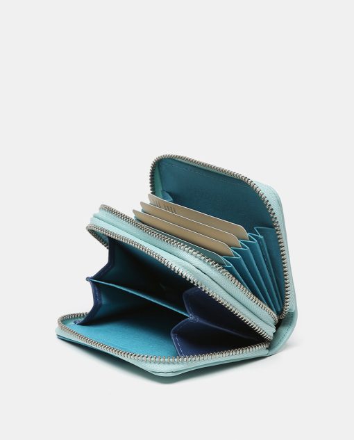 Small women’s accordion wallet made from leather that combines various color tones. A model where a curved strip of darker leather stands out across the front of the wallet, adding a touch of contrast and originality to the design. Its main features are: