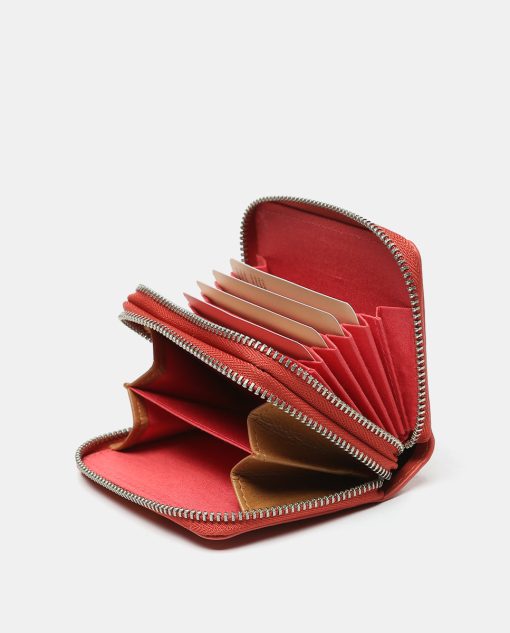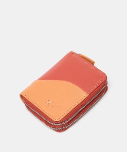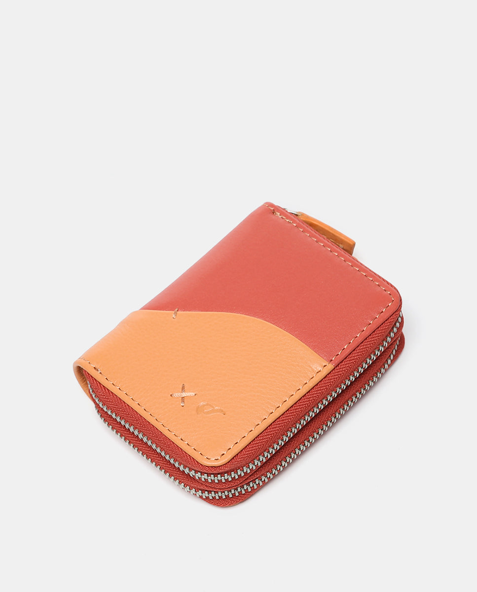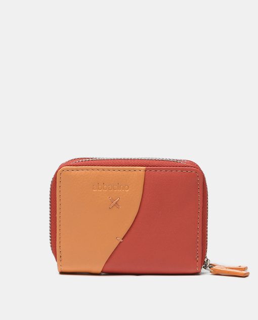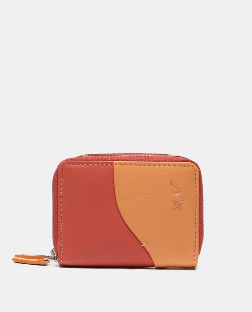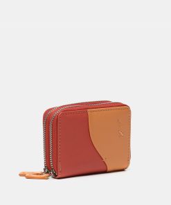 Small women’s accordion wallet made from leather that combines various color tones. A model where a curved strip of darker leather stands out across the front of the wallet, adding a touch of contrast and originality to the design. Its main features are: