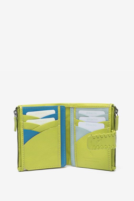 Women’s small leather wallet. A very simple design that stands out for its vibrant and bold colours. Its main features are: