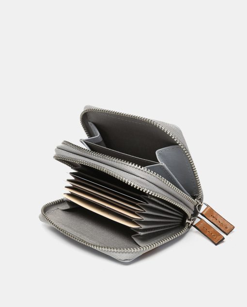 • Inside, it has several slots for cards and a coin purse with a zipper.