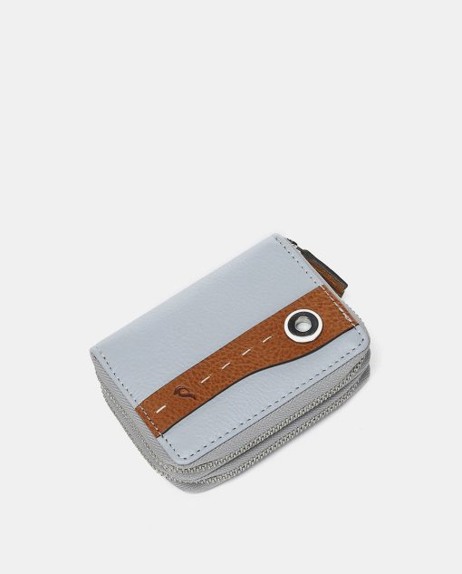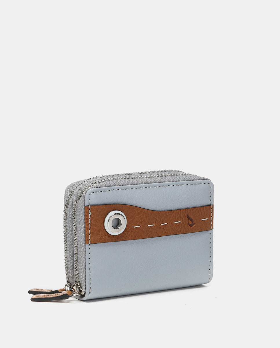Small women’s accordion wallet made from leather that combines two color tones. A very original model dyed in summery colors with metallic accents. Its main features are: