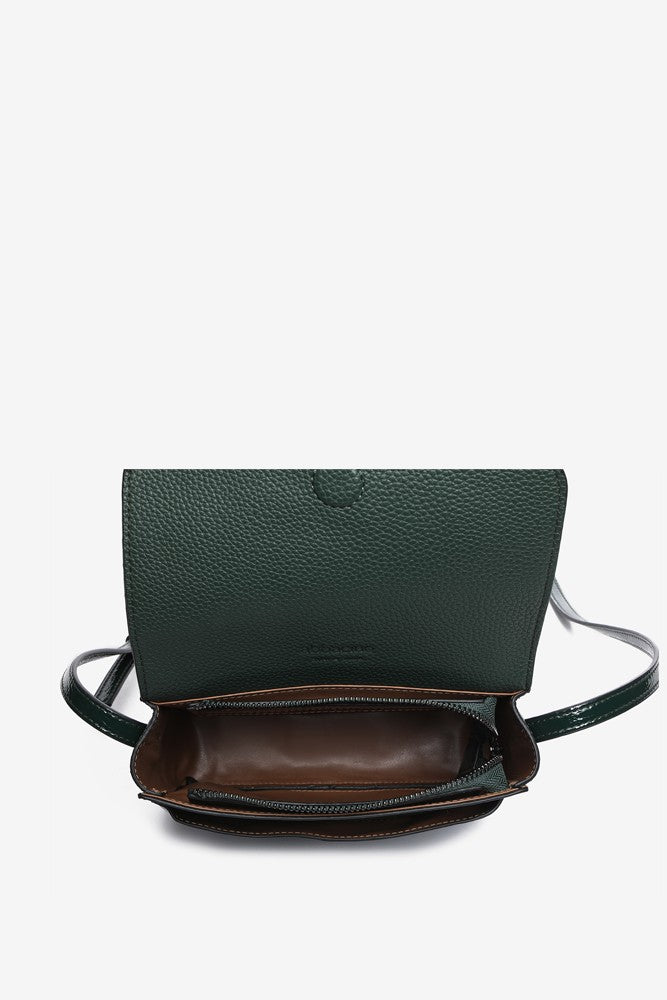 Small patent leather women’s crossbody bag. A new fabric that is making a strong comeback this season. This compact model is perfect for those users who are looking for a daring accessory with which to stand out and add an original touch to their looks.