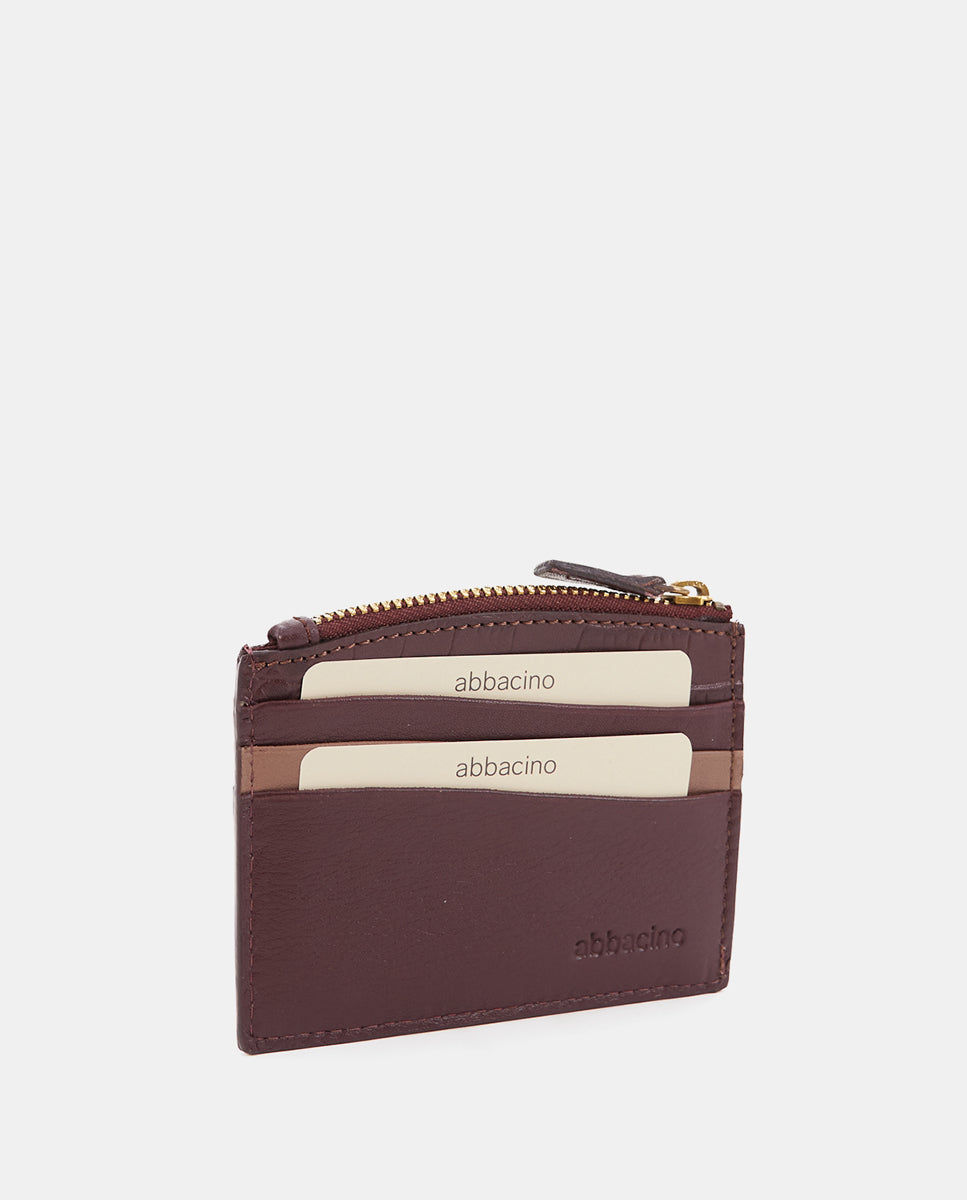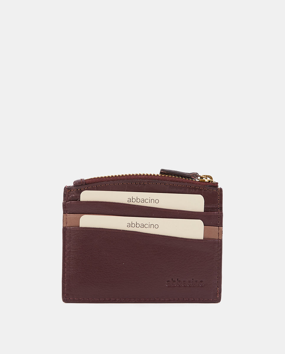• Multiple card slots and a small zippered coin purse for added convenience.