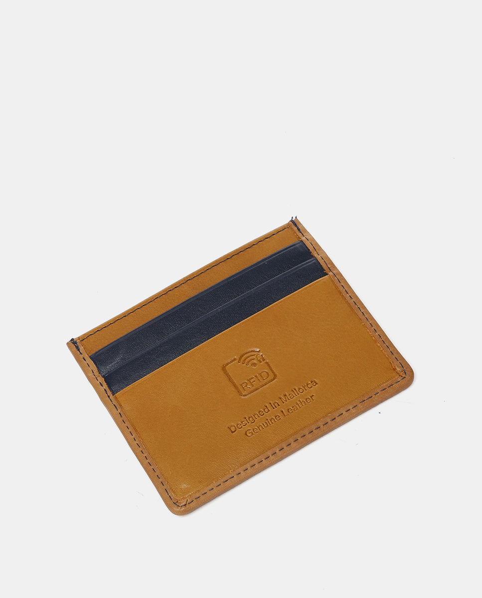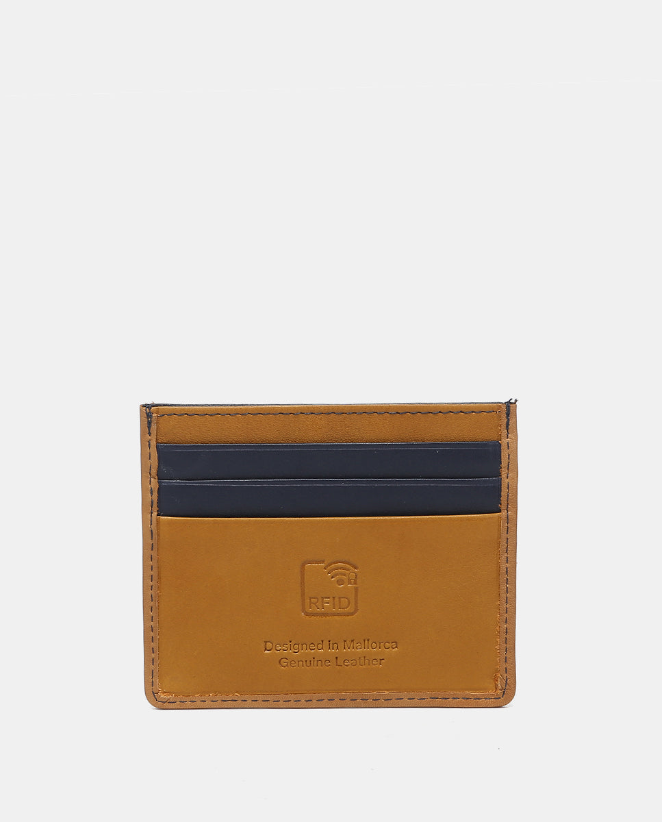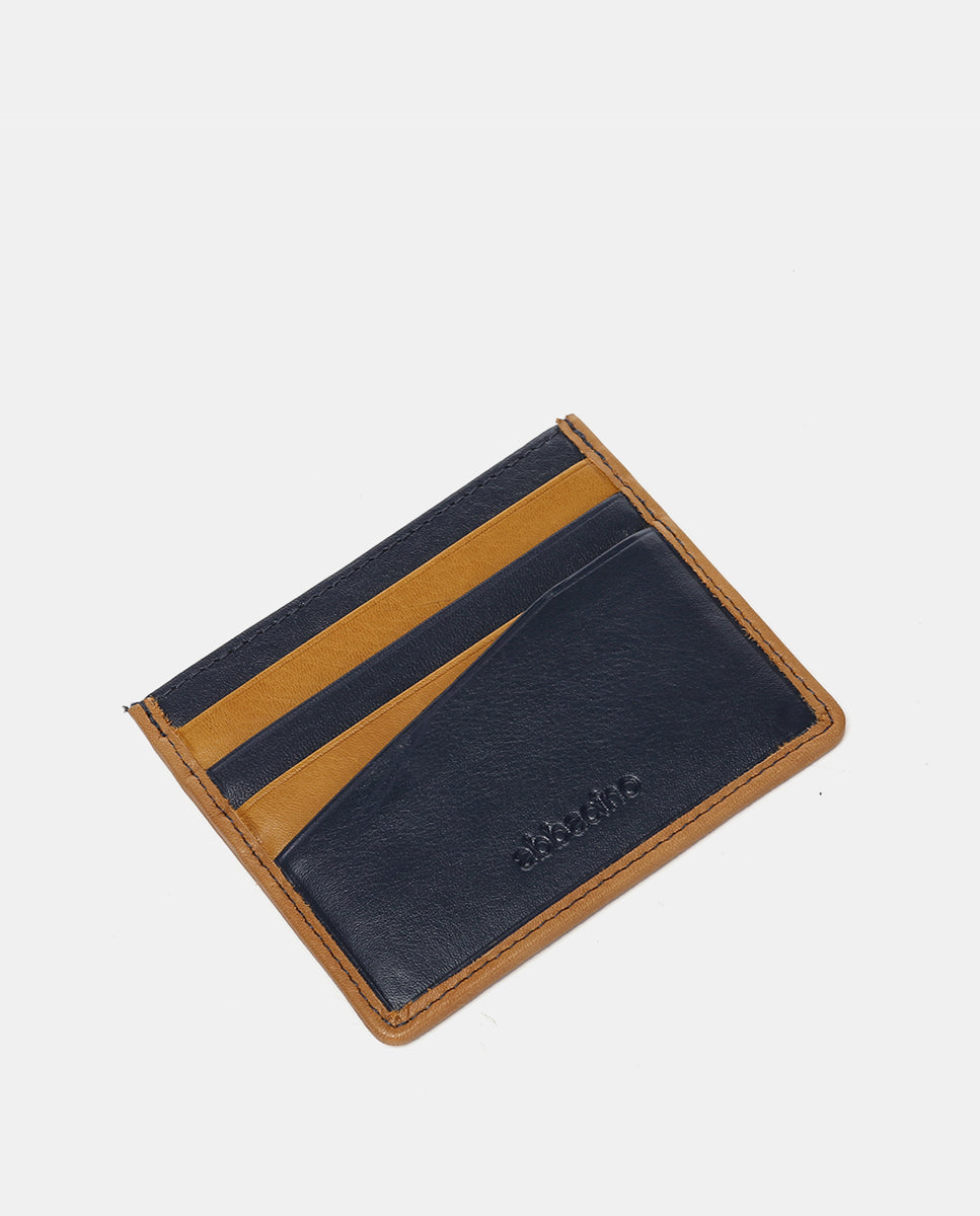 Men’s cardholder made of cowhide leather. It stands out for its color combination. Ultra-thin design with multiple exterior slots for cards.