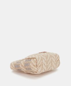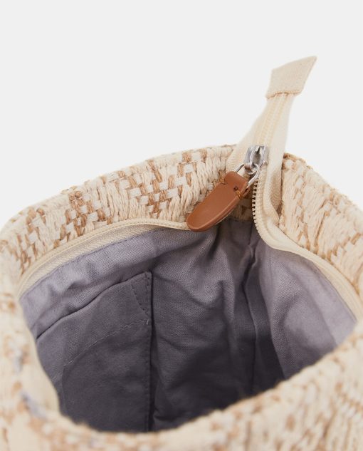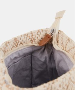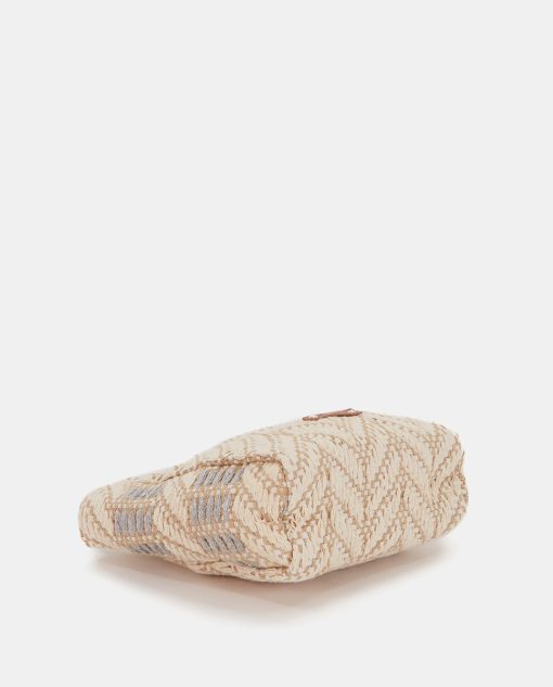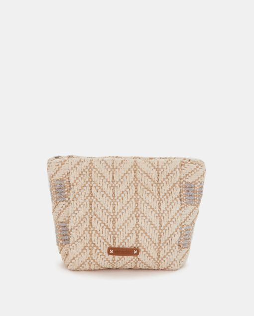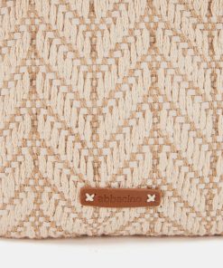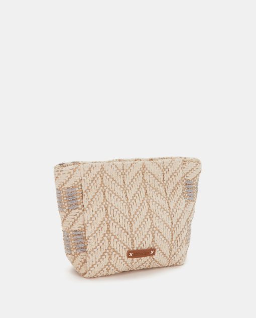 Beach pouch made from fabric with embroidered details. A loose and lightweight model, ideal for your beach getaways. It combines different color shades that are totally on trend this new season, creating a beautiful geometric pattern. Its main features are: