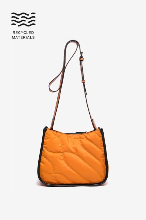 Women’s crossbody bag made from recycled materials and with an original padded finish. We combine trend with sustainability by creating original and practical accessories, without compromising on fashion. This sporty design is perfect for everyday use thanks to its size and practicality: take it with you to the office, to an afternoon of shopping or for a walk with the family.